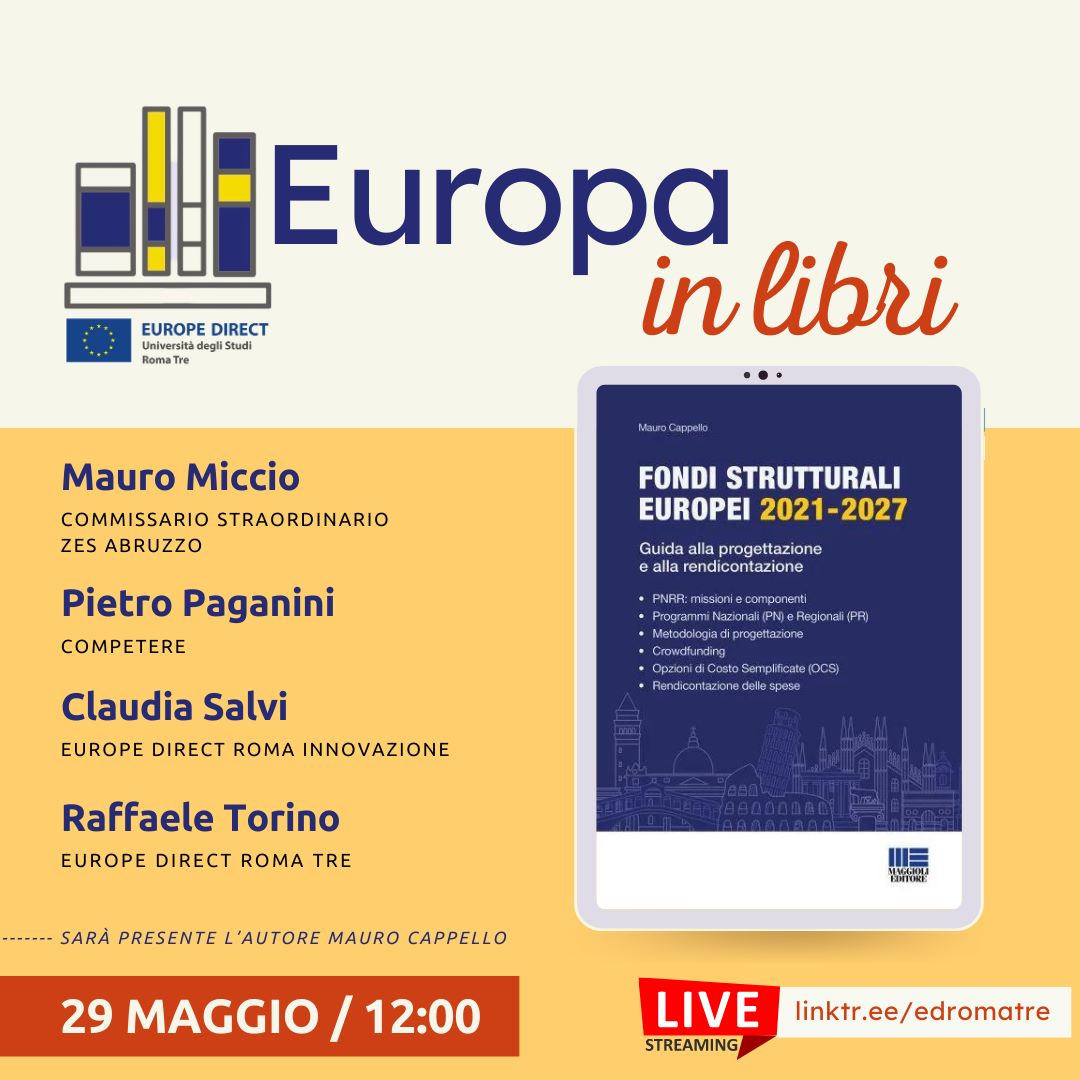 Mauro Capello è professore di Sustainable industrial logistics and digitalization presso l’Università degli Studi della Tuscia e si occupa di fondi strutturali europei ed europrogettazione. Dal 2004 al 2016 è stato Autorità di Audit di vari Programmi Operativi Nazionali cofinanziati dal FESR e dal FSE; nel 2015 è stato invitato, unico italiano in un panel internazionale, a presentare proposte al Parlamento europeo per la revisione della strategia Europa 2020. Saranno anche presenti, insieme all’autore, alla presentazione del volume anche Mauro Miccio, commissario straordinario Zas Abruzzo, Pietro Paganini, competere, Claudia Salvi, Europe direct Roma innovazione e Raffaele Torino, Europe direct Roma