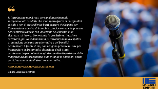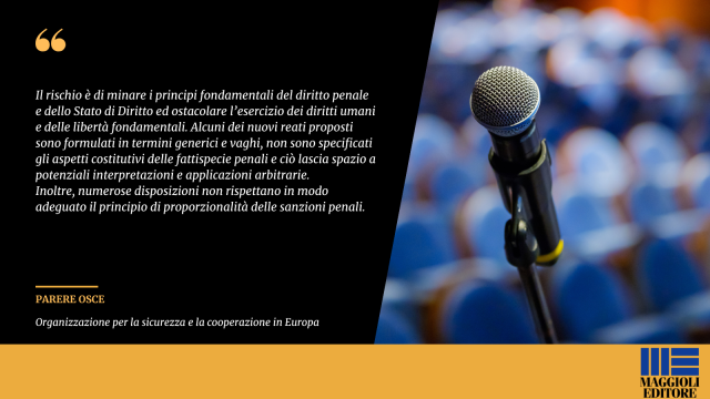 Già a principio del suo iter, il 27 febbraio 2024, il Vice Presidente della Commissione Giustizia del Senato italiano aveva inviato all’Ufficio per le Istituzioni Democratiche e i Diritti Umani dell’OSCE il disegno di legge n. 1660. L’Ufficio per le istituzioni democratiche e i diritti umani (ODIHR) aveva sollecitato le autorità pubbliche a garantire che la discussione del disegno di legge fosse preceduta da un’approfondita valutazione dell’impatto regolatorio e fosse oggetto di consultazioni aperte, inclusive, ampie ed efficaci, con la partecipazione delle organizzazioni sui diritti umani e del pubblico in generale, inclusi i gruppi marginalizzati. La redazione della Corte di Cassazione sottolinea ulteriori rilievi critici emessi da vari enti, tra i quali il Consiglio Superiore della Magistratura, ONU, Organizzazione per la Sicurezza e la Cooperazione in Europa (OSCE), Associazione Nazionale Magistrati (ANM) e Unione delle Camere Penali Italiane (UCPI).
