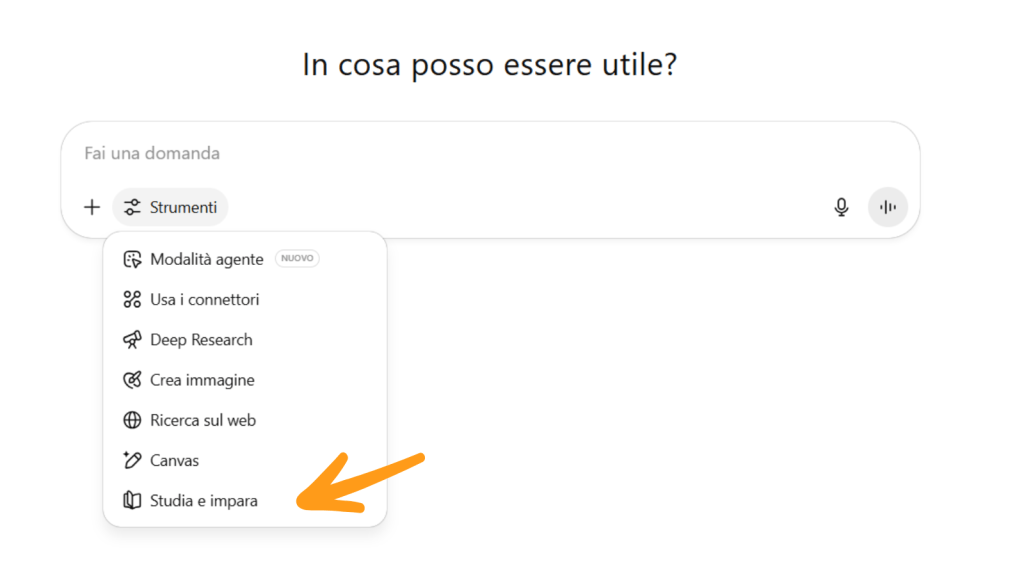 Sta comunque allo studente scegliere quale funzionalità adoperare. Cliccando sulla modalità “studia e impara” si avrà accesso a domande puntuali e guidate, suggerimenti per favorire la comprensione. In particolare ChatGPT si adotta di: