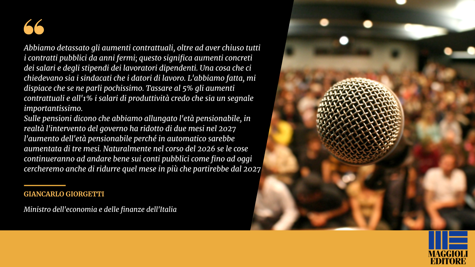 Innanzitutto, tema di rilevante interesse per tutta la platea pubblica, le modifiche all’età pensionabile. Se prima l’innalzamento era fissato a 3 mesi, con la Manovra questo sarà ridotto a un mese nel 2026 e due nel 2027.