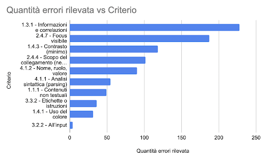 Dei 50 criteri applicabili ai siti web, sono 11 quelli in cui vengono rilevati un maggior frequenza di errore